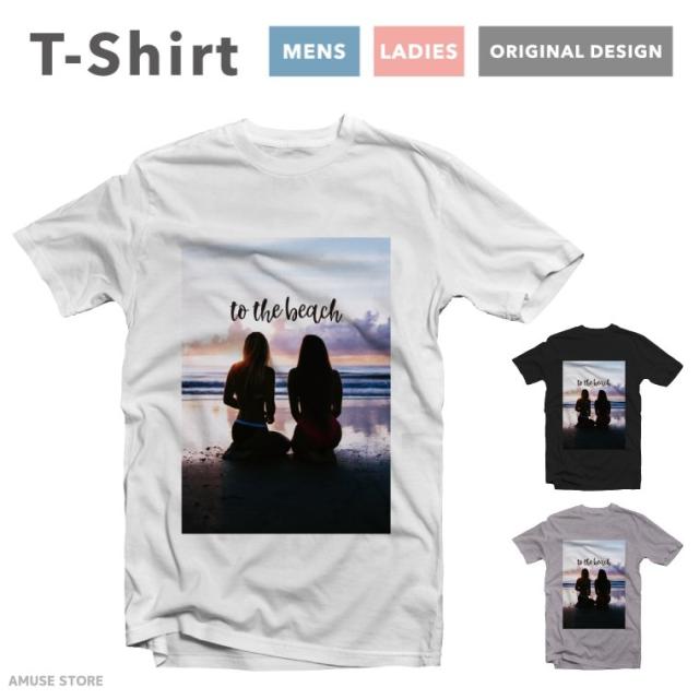 Tシャツ レディース 半袖 おしゃれ プリント ブラック ホワイト グレー TO THE BEACH 海 sea 夕焼け summer 夏 HAWAII