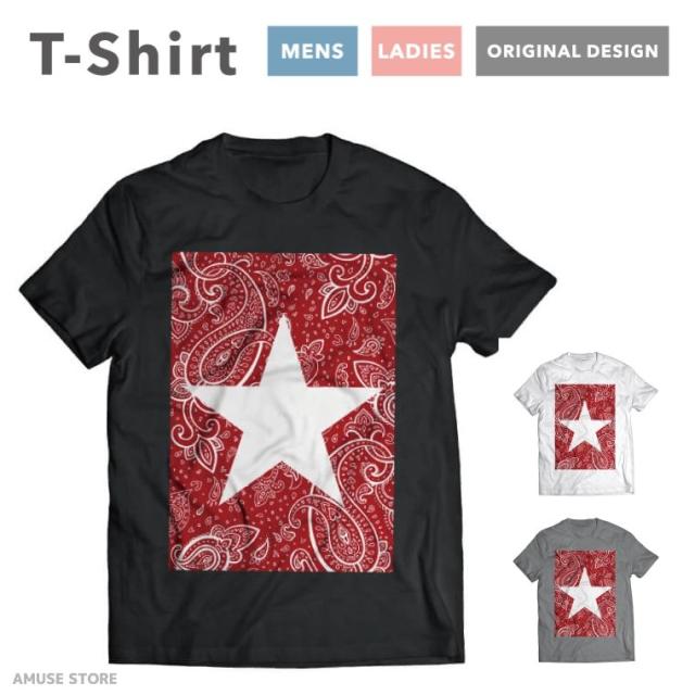 Tシャツ レディース 半袖 おしゃれ プリント ブラック ホワイト グレー SATR 星 ペイズリー Paisley ペイズリー