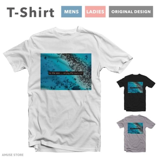 Tシャツ レディース 半袖 おしゃれ プリント ブラック ホワイト グレー To The sea enjoy The summer beach 海 夏 綺麗