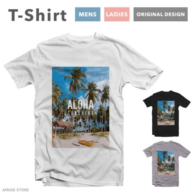 Tシャツ レディース 半袖 おしゃれ プリント ブラック ホワイト グレー ALOHA SUNSHINE ヤシの木 アロハ summer beach 海 夏