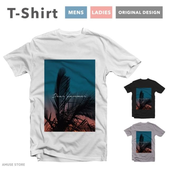 Tシャツ レディース 半袖 おしゃれ プリント ブラック ホワイト グレー Dean Summer ヤシの木 アロハ 星 STAR beach 海 夏
