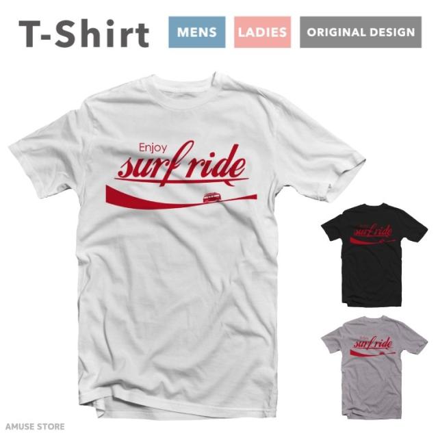 Tシャツ レディース 半袖 おしゃれ プリント ブラック ホワイト グレー Enjoy Surf Ride サンプリング CAR DRINK カラフル