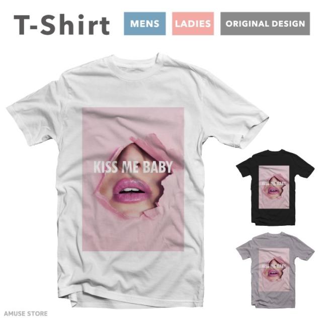 Tシャツ レディース 半袖 おしゃれ プリント ブラック ホワイト グレー KISS ME BABY ピンク PINK 女性 Ladies Face
