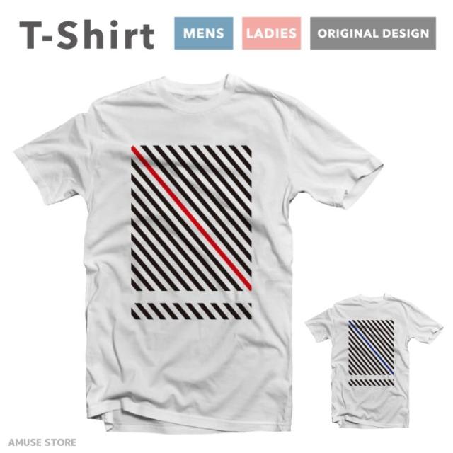 Tシャツ レディース 半袖 おしゃれ プリント ブラック ホワイト グレー スラッシュ ブルー レッド 斜線