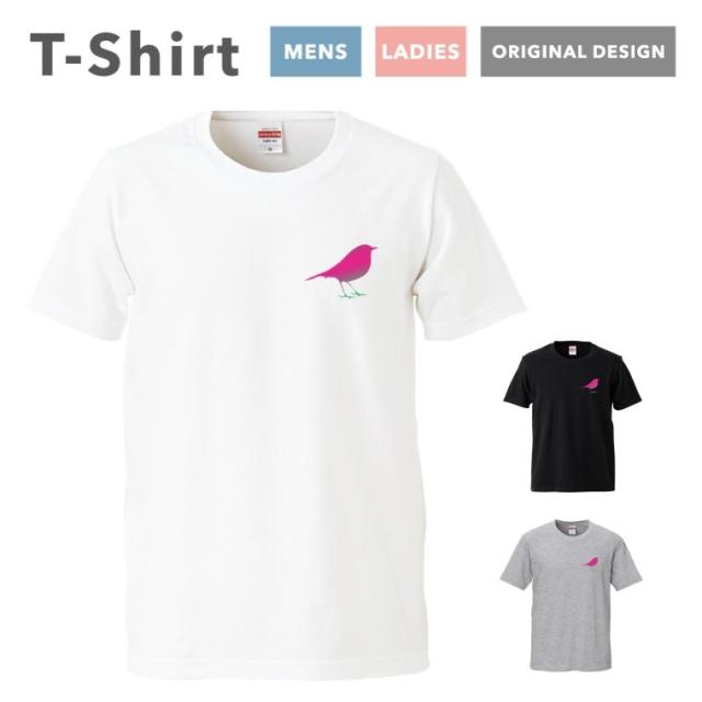 Tシャツ レディース 半袖 おしゃれ プリント ブラック ホワイト グレー 鳥 Bird バード ピンク シルエット ワンポイント