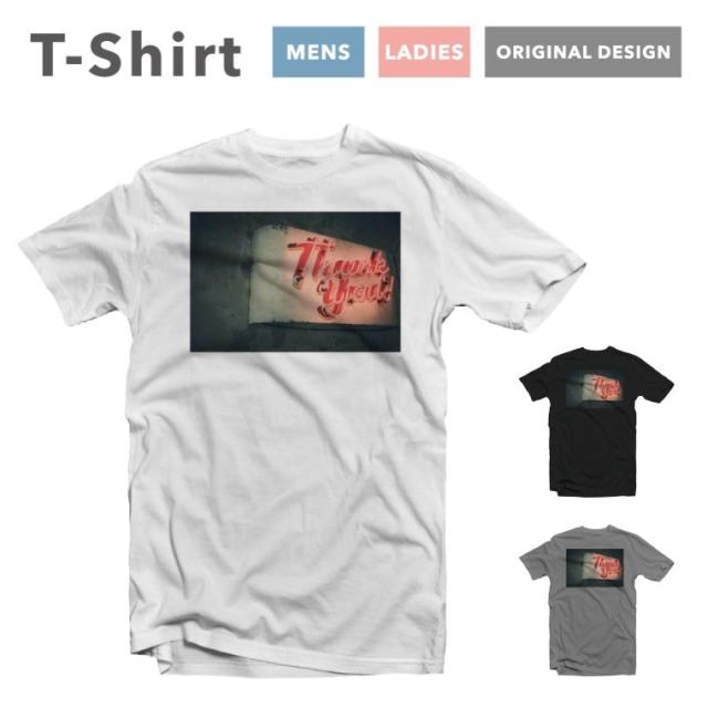 Tシャツ レディース 半袖 おしゃれ プリント ブラック ホワイト グレー Thank You! ネオン管 Neon Tube Dark 老舗