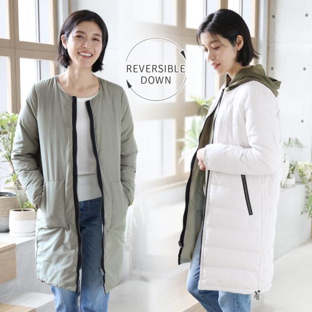 ダウンコート レディース コート リバーシブル ダウン 80% 暖かい ノーカラー 9号 13号 大きいサイズ