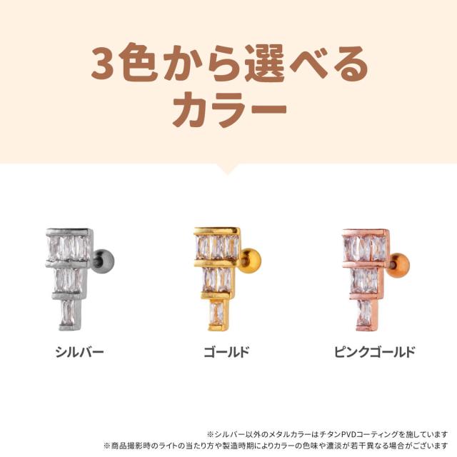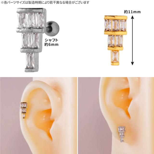 バゲット カット スクエア ビジュー ストレートバーベル 14G 16G 18G 20G サージカルステンレス ヘリックス 軟骨ピアス ボディピアス
