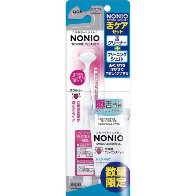 原料・成分等●舌専用クリーニングジェル【成分】水、ソルビトール、PG、ポリアクリル酸Na、コカミドプロピルベタイン、アルギン酸Na、クエン酸Na、香料、クエン酸、サッカリンNa、セチルピルジニウムクロリド●舌クリーナー【材質】柄の材質:ポリプロピレン毛の材質:ナイロンラバーの材質:SBC耐熱温度:80度毛の硬さ:やわらかめ使用方法等●舌専用クリーングジェル【使用方法】本品を適量(約1.5cm)、舌ブラシや歯ブラシに取り、舌を清掃する。使用後は飲み込まずに、水ですすぐ。●舌クリーナー【使用方法】ブラシを水で濡らし、ブラシを舌に軽く当て、舌の奥から手前に向かってゆっくり引いてください。舌を傷つけるおそれがありますので、強くこすらないでください。舌をみがいた後はお口をよくゆすいでください。使用上の注意点●舌専用クリーングジェル舌を磨きすぎたり、強くブラッシングすると傷つけることがあります。発疹などの異常が現れたときは使用を中止し、商品を持参し医師に相談してください。●舌クリーナー1日1回を目安に、舌の汚れが気になる時にご使用ください。舌が荒れている場合は使用しないでください。舌がヒリヒリしたり、異常が現れた場合は、使用を中止してください。舌の奥まで入れて使用すると、吐き気が起きる場合がありますので、注意してください。使用後は、よく水洗いして乾燥させてください。衛生的にお使いいただくために、汚れが気になるとき、または1ヶ月を目安に取り替えてください。舌の清掃時にNONIO舌専用クリーニングジェルをお使いいただくと、口臭の予防に効果的です。製造国日本お問合せ先(製造販売元)ライオン株式会社〒130−8644 東京都墨田区本所1−3−70120−556−913