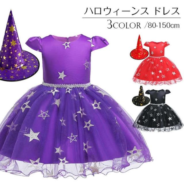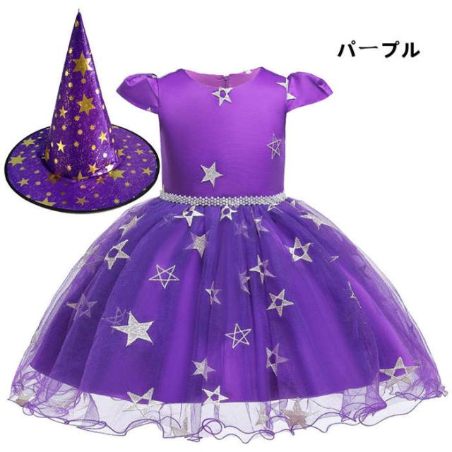 商品名:ハロウィンコスプレ 子供 ハロウィン 衣装 女の子 魔女 コスプレ衣装 ハロウィン ハロウィン衣装 魔女 仮装 帽子あり 演出服 子供服 ベビー服 ドレス ワンピース 半袖 コスプレ 衣装 コスチューム パーティー キッズ用 お姫様 星柄 80cm 90cm 100cm 110cm 120cm 130cm 140cm 150cm