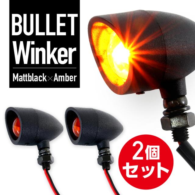 ブレット ウインカー アメリカン 砲弾型 アイアン ブラック 2個 セット アンバー 汎用 12V レブル シャドウ スティード エリミネーター イントルーダー バイク