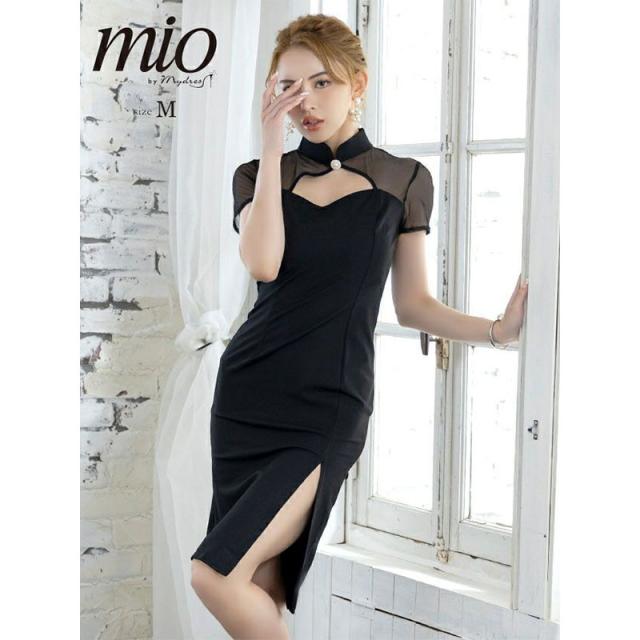 MyDress マイドレス Mio ミオ ツィードルック スタンドカラースリットミディ丈ワンピース ブラック ミニドレス キャバドレス[AG2303045]