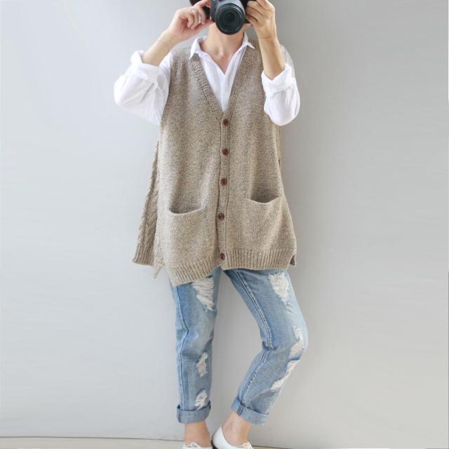 【水曜日まで!10%クーポン配布中】 ベスト レディース ニットベスト 50代 30代 ボタン 重ね着 ジレ チョッキ 秋コーデ カジュアル ノースリーブ ロング丈 v