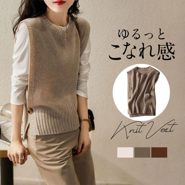【水曜日まで!10%クーポン配布中】 ベスト レディース ニットベスト 重ね着 秋 冬 トップス スウェット カジュアル ゆったり オーバーサイズ ノースリーブ 50代