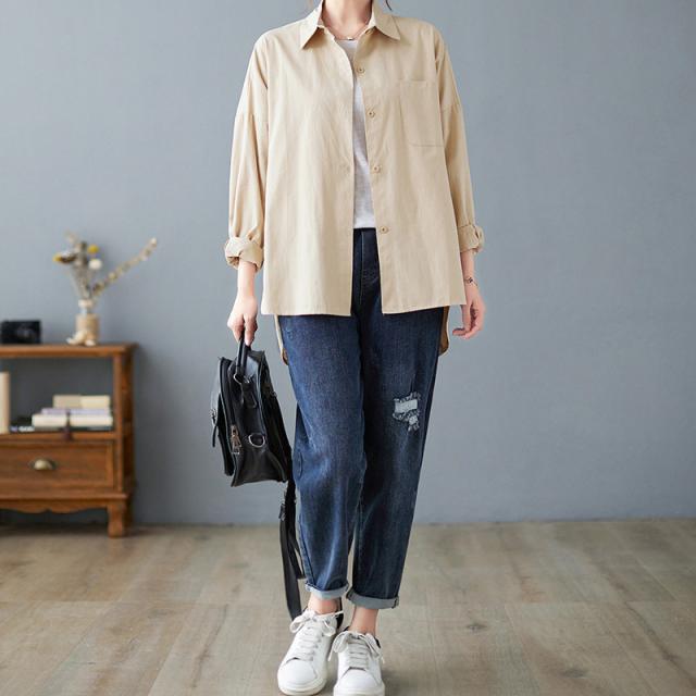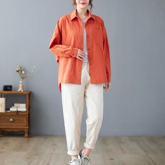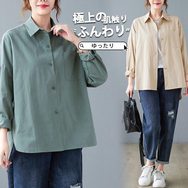 【水曜日まで!10%クーポン配布中】 ブラウス シャツ レディース 綿100% 秋コーデ 上品 ゆったり 長袖ブラウス 体型カバー 大きいサイズ 着痩せ 秋 30代 4