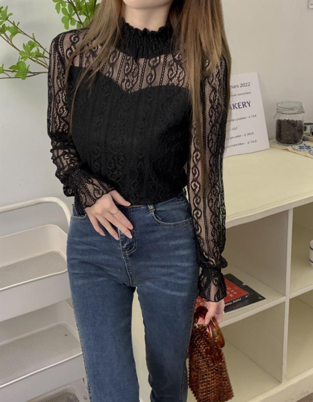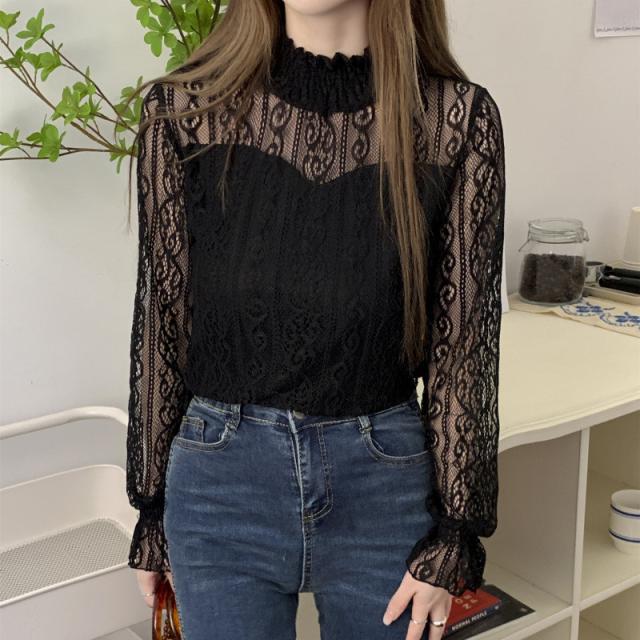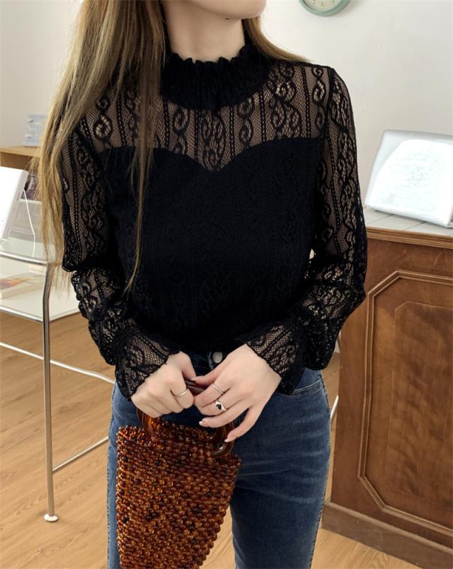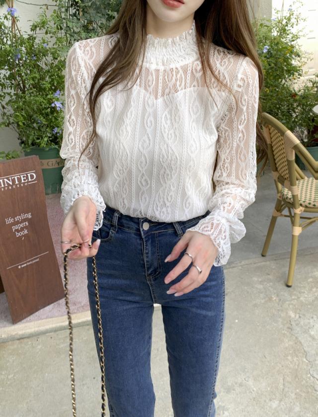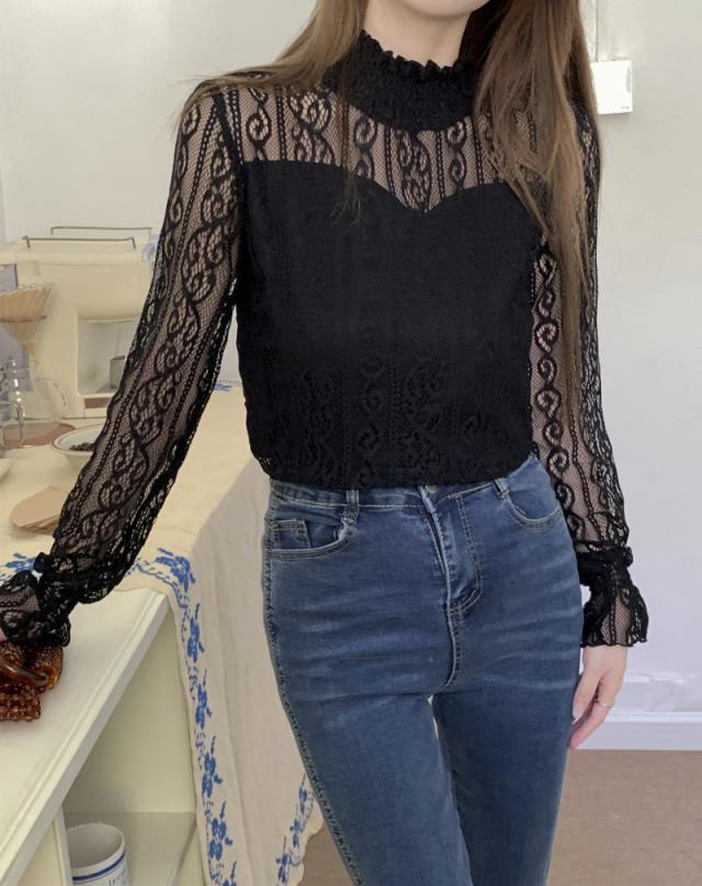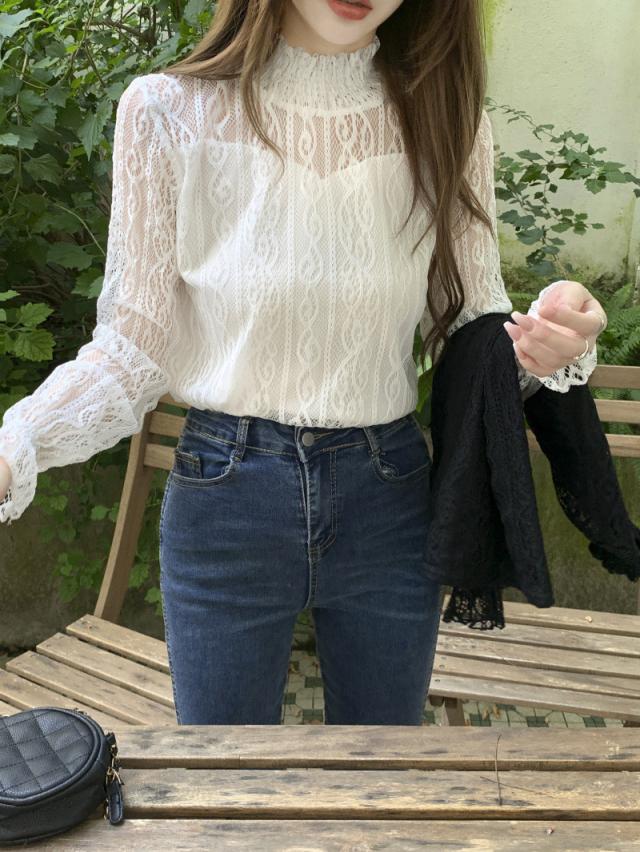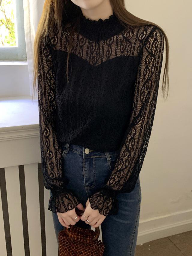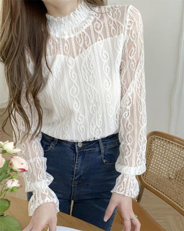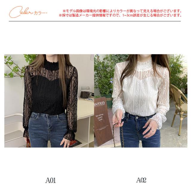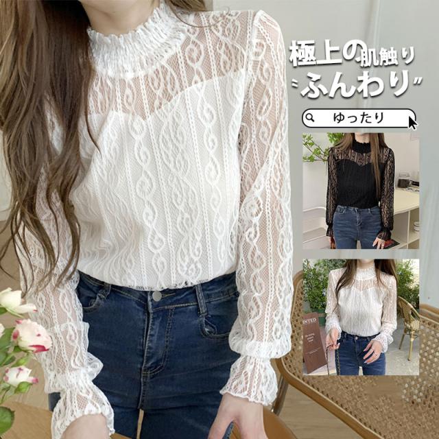 【水曜日まで!10%クーポン配布中】 ブラウス シャツ レディース トップス 長袖ブラウス レースブラウス シアートップス 30代 上品 ハイネック 秋コーデ アウター