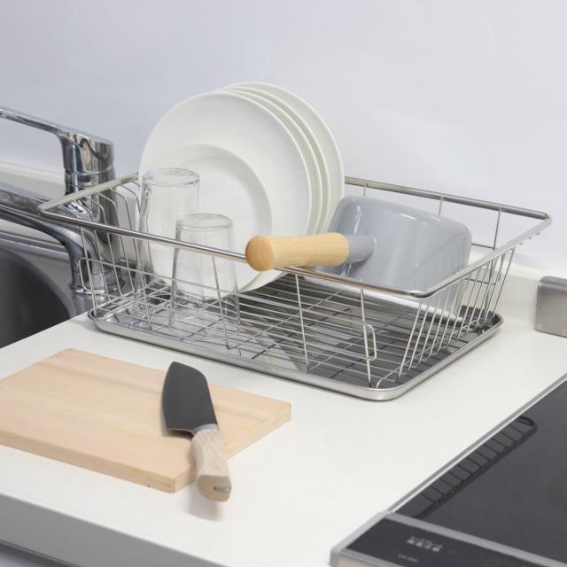 本体、水受けトレーともに、サビにくく丈夫なステンレス製です。汚れの溜まりやすいワイヤーの交差を減らした仕様になっており、洗いやすくいつも清潔にお使いいただけます。
