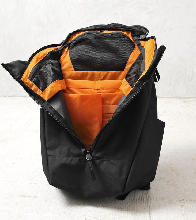 MYSTERY RANCHのカタリスト 26は17インチのノートパソコンが収納可能で普段使いはもちろん、アウトドアや旅行も耐えるタフな大容量バックパックです。特徴的な3ジップデザインで、内部へ簡単に素早くアクセスでき、大きく開閉するメインコンパートメントは、ノートブック用のオーガナイザースリーブ、2つのジッパー付きポケットがあり、あらゆる小物を仕分け収納・整理整頓が非常に行いやすくなっています。大切なPCやタブレットを守るラップトップポケットは、安全な背面側にありパッドが施され、取り出しやすい上げ底構造。 キークリップ付きのトップポケット、背負ったままでもボトルの出し入れが楽なサイドポケットなどを備えています。