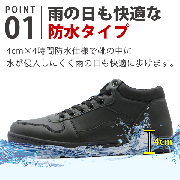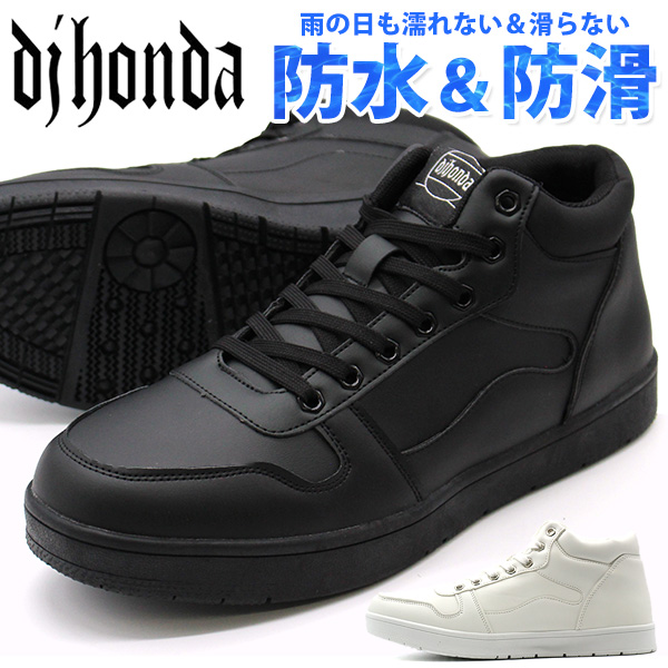 スニーカー メンズ 靴 黒 ブラック 白 ホワイト 防水 防滑 滑りにくい 雨 雨の日 雪 おしゃれ カッコイイ 疲れない クッション性 歩きやすい 通勤 立ち仕事 ハイカット ブーツ ショートブーツ DJ-honda ディージェイホンダ DJ-316