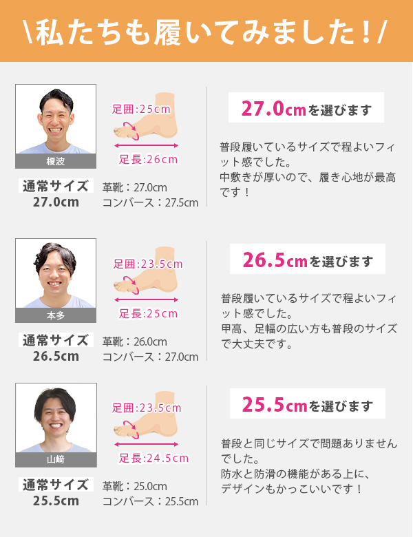 取り扱いサイズ:25cm 25.5cm 26cm 26.5cm 27cm 28cm