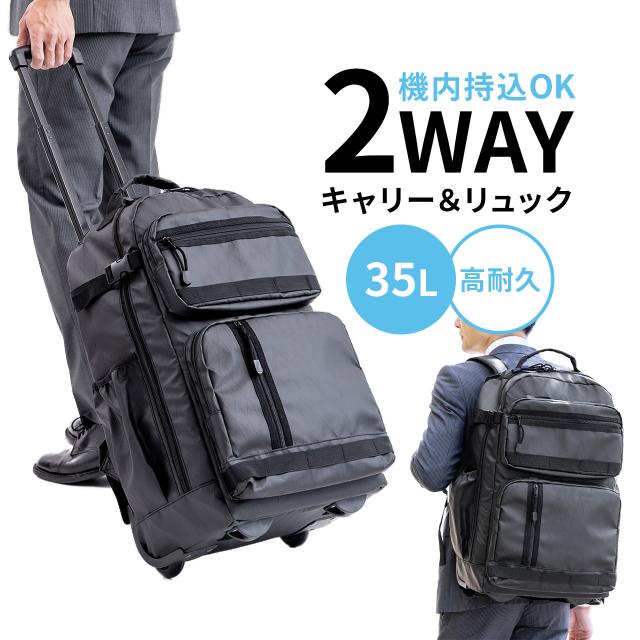 キャリーリュック ビジネスキャリー キャリーバッグ ビジネスリュック 35リットル 2輪 出張 旅行 トラベル [200-BAGCR010BK]