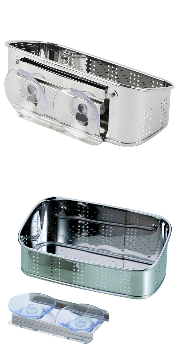 ●吸盤式の、ステンレス製洗剤・スポンジラックです。