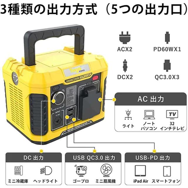 ・ USB-TypeC出力(PD) : 1x 5V/9V/12V/15V/20V 3A、最大出力60W