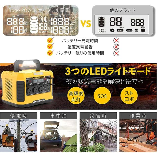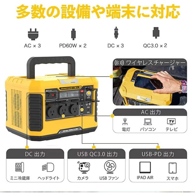 【正規代理店】TogoPower ADVANCE1550 ポータブル電源 1500W 1512Wh ワイヤレス充電 LEDライト BBQ 車中泊 イベント 防災 PSE認証済