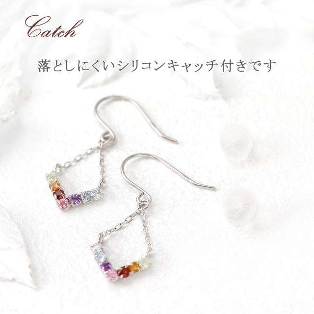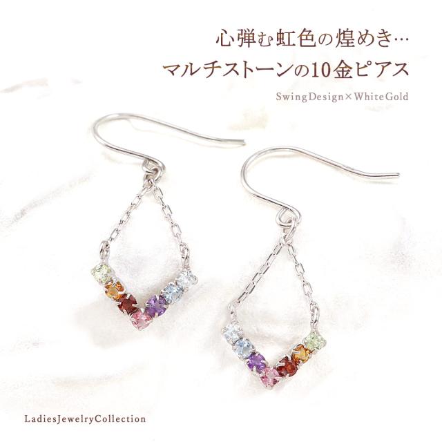 ピアス フック レディース ホワイトゴールド 10金 天然石 アクアマリン ブルートパーズ アメジスト ピンクトルマリン ガーネット シトリン ペリドット プレゼント 成人祝い 二十歳 宝石 揺れる フックピアス 本物 7色 虹色 嫁 娘 彼女 V字 小ぶり 小さめ 母の日 ギフト 2026