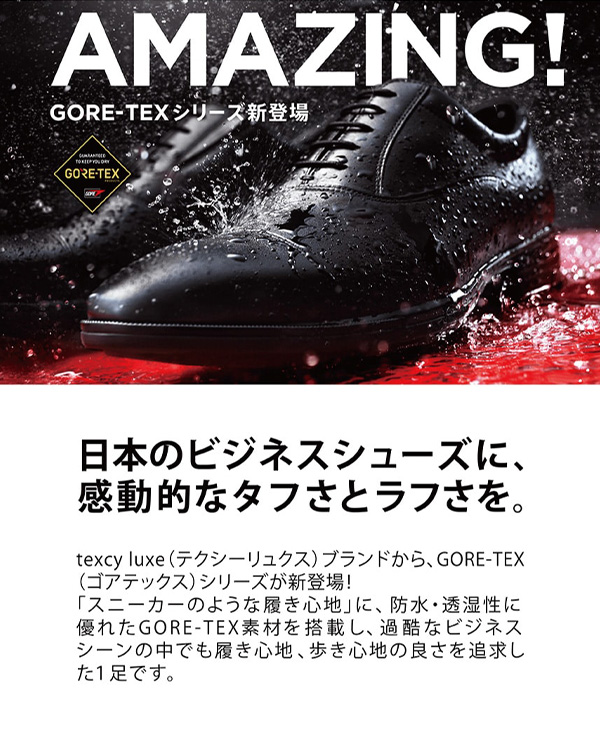 テクシーリュクス ビジネスシューズ アシックス商事 texcy luxe メンズ 革靴 本革 ゴアテックス 防水 天然皮革 幅広 甲高 3E ストレートチップ ブラック 黒 ブラウン 茶 カジュアル ブランド 疲れない おしゃれ 軽量 軽い TU-8002