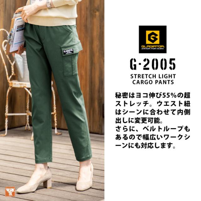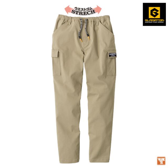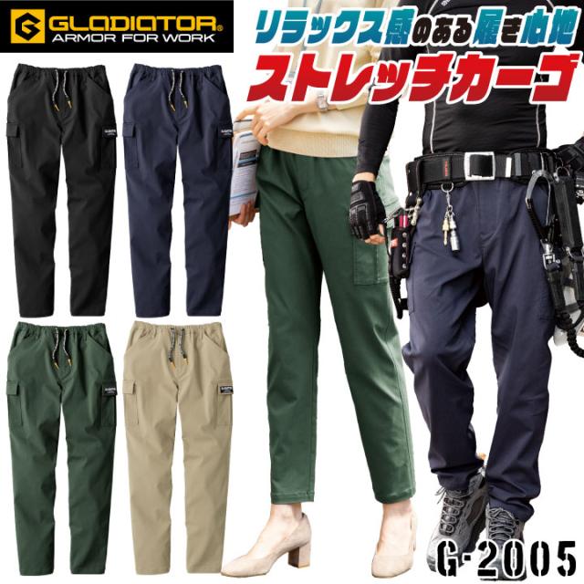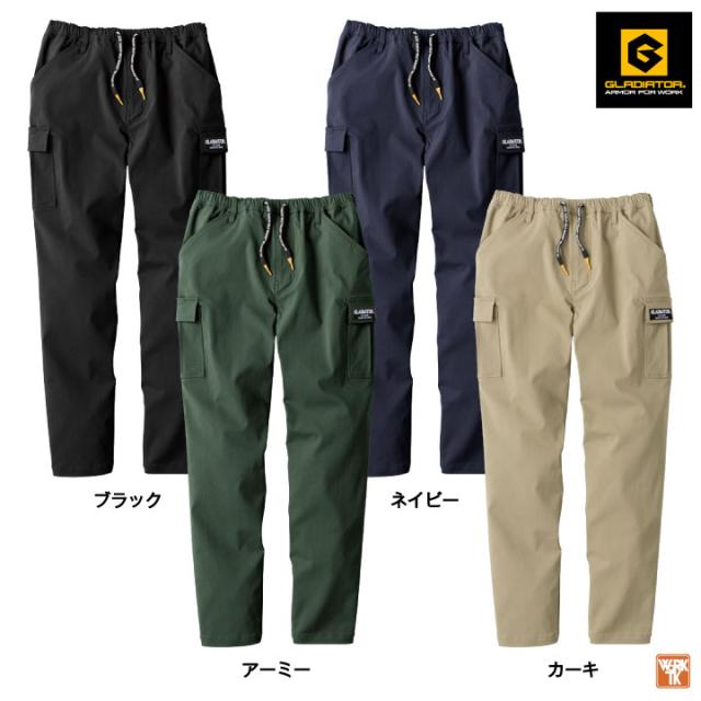 グラディエーター ストレッチ カーゴパンツ 軽い 春夏 秋冬 ウエストゴム 無地 テーパード スリム チノパン チノパンツ 作業ズボン 作業着 作業服 アウトドア おしゃれ カジュアル メンズ レディース ブラック ネイビー カーキ 大きいサイズ GLADIATOR コーコス cc-g2005