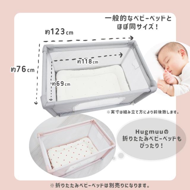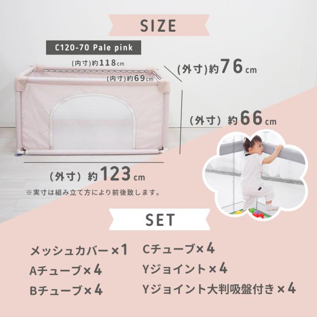 ベビーサークル Hugmuu コンパクト 120×70 長方形 小さめ メッシュ サークル 扉付き プレイヤード 自立式 ベビーゲート ベビー フェンス 滑り止め 洗濯可能 洗える 赤ちゃん 子供 Gray Pink C120-70
