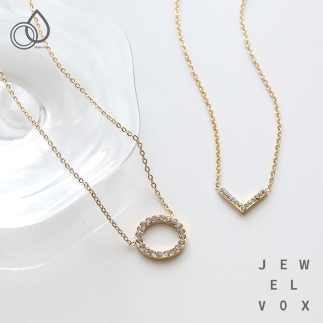 ネックレス ステンレス製 レディース ショート サージカルステンレス 金属アレルギー サークル Vライン V字
