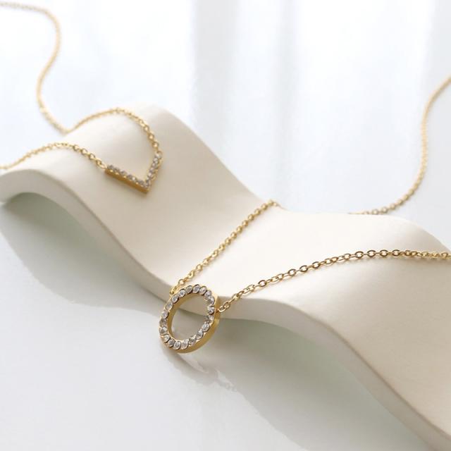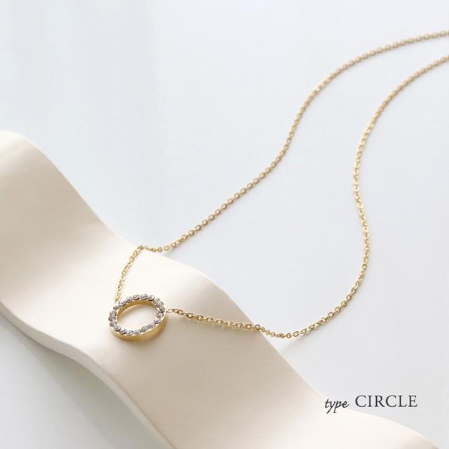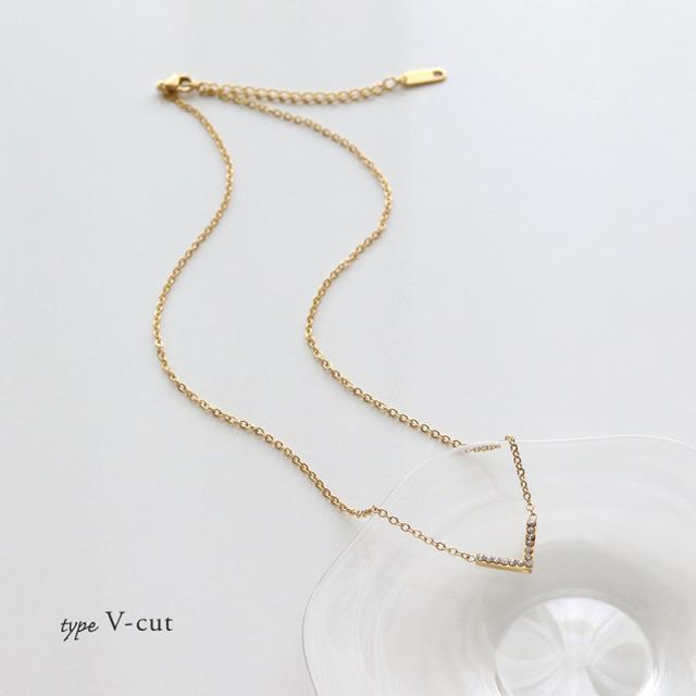 | 水にも強く、金属アレルギーの方でも比較的安心して使えるお肌に優しいサージカルステンレス製のネックレスです。 抜け感のあるシルエットが胸元に映えるサークルタイプと、上品でスタイリッシュなV字ラインの2つのデザイン。 煌めくストーンが美しく上品な華やかさを演出してくれます。 | |