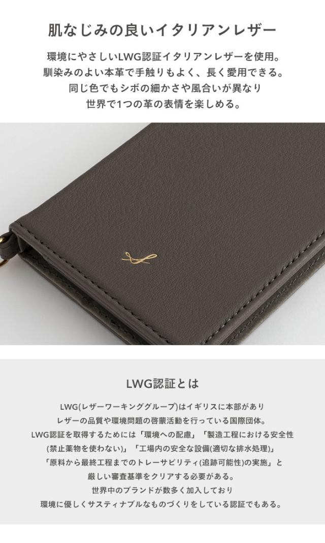環境への負荷を減らすことを素材選びの基準に考え、環境にやさしいLWG認証のイタリアンレザーを使用。