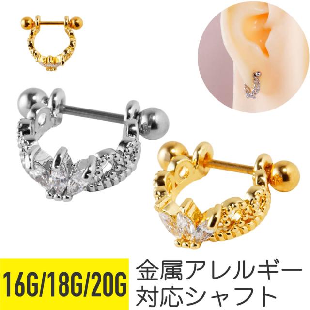 ティアラ ビジュー シールド ピアス 16G 18G 20G サージカルステンレス ジルコニア ジュエル ヘリックス 軟骨ピアス ボディピアス