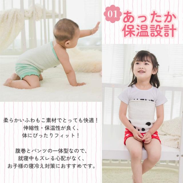 柔らかいふわもこ素材でとっても快適!伸縮性・保温性が良く、体にぴったりフィット!腹巻とパンツの一体型なので、就寝中もズレる心配がなく、お子様の寝冷え対策におすすめです。