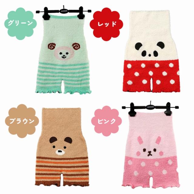 お子様が喜ぶ可愛いアニマルデザイン。グリーン(ひつじ)・レッド(パンダ)・ブラウン(くま)・ピンク(うさぎ)の4色展開です。裾がフリルになっているのもポイント!毎日履きたくなる可愛さです。