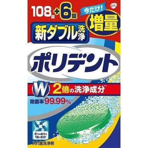 新ダブル洗浄ポリデント108錠+6錠増量品 強力除菌 速効洗浄 漂白促進