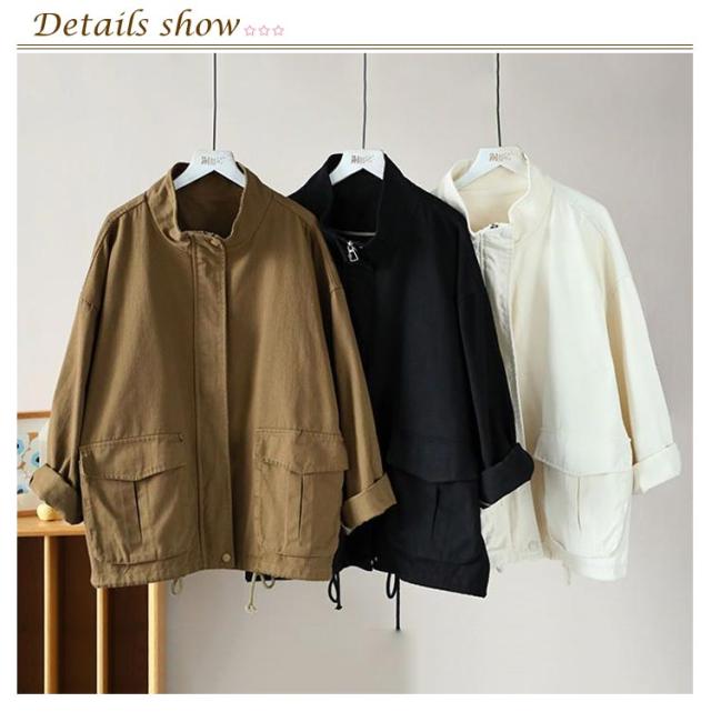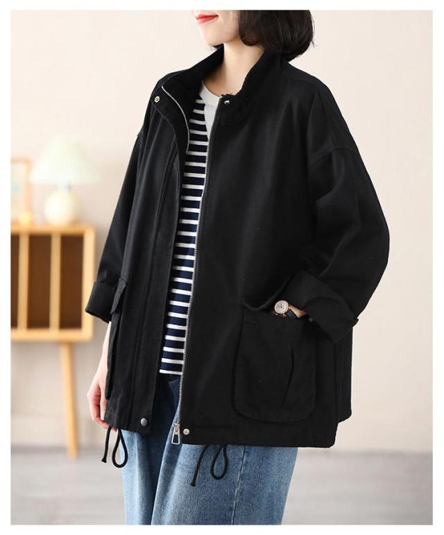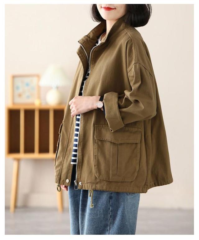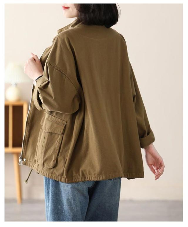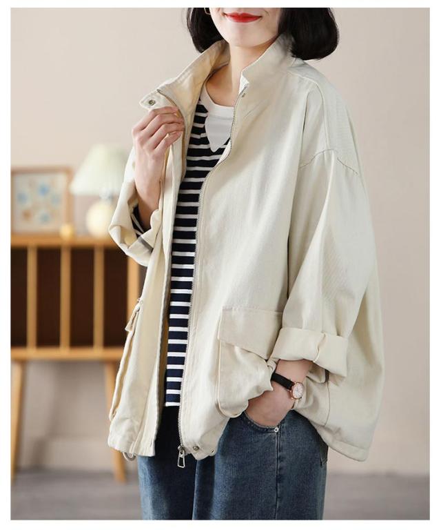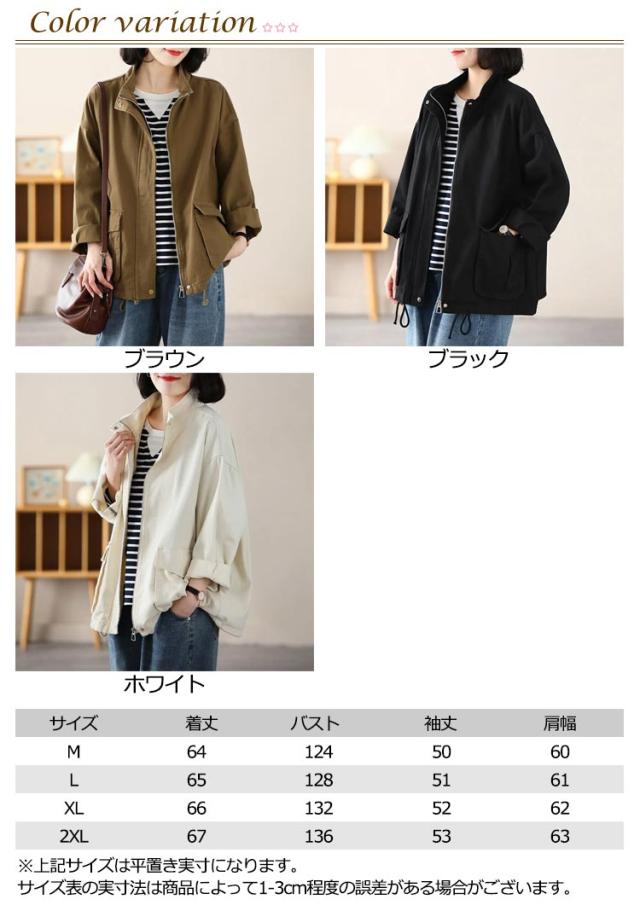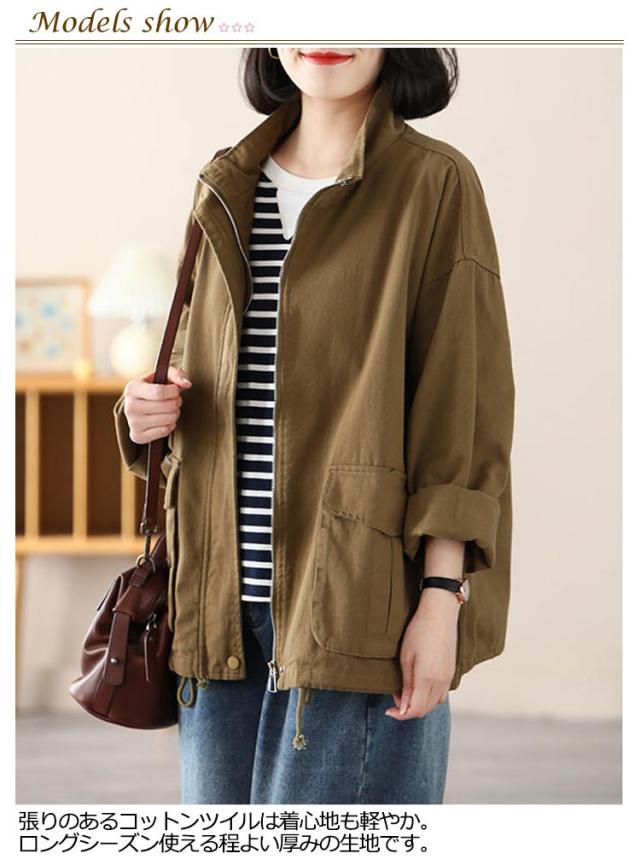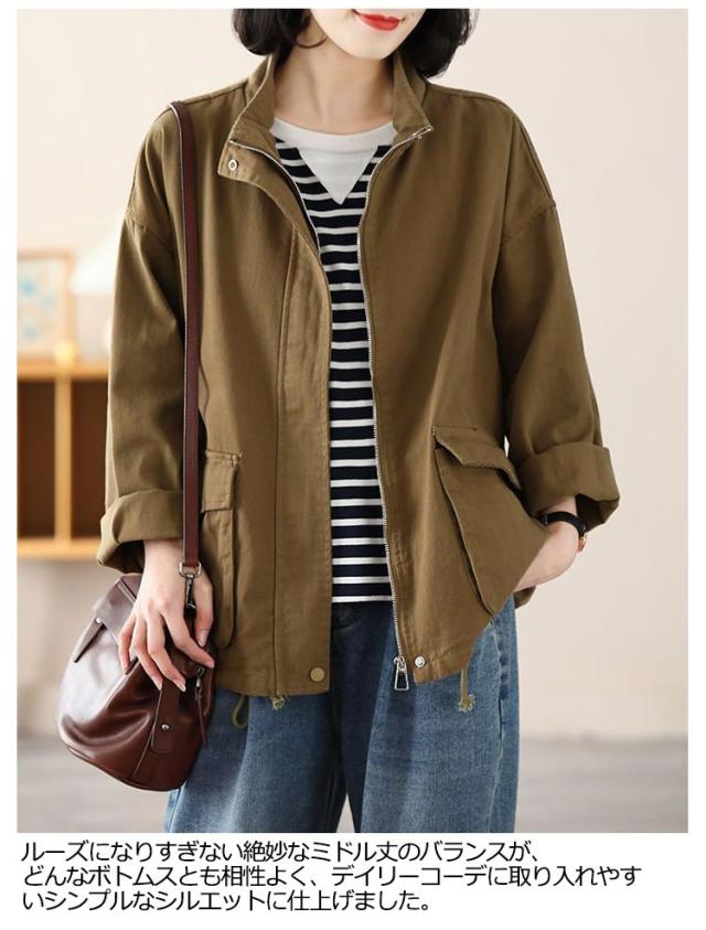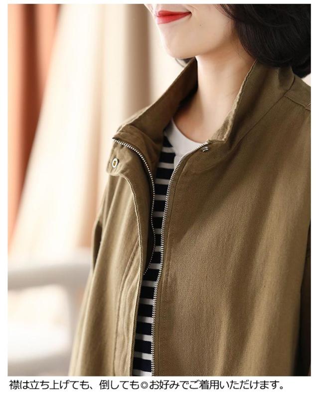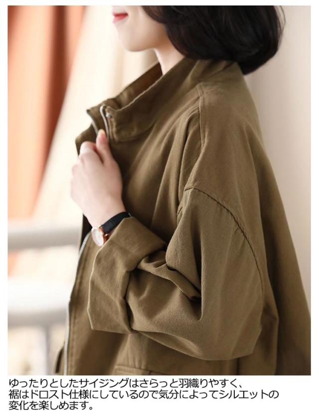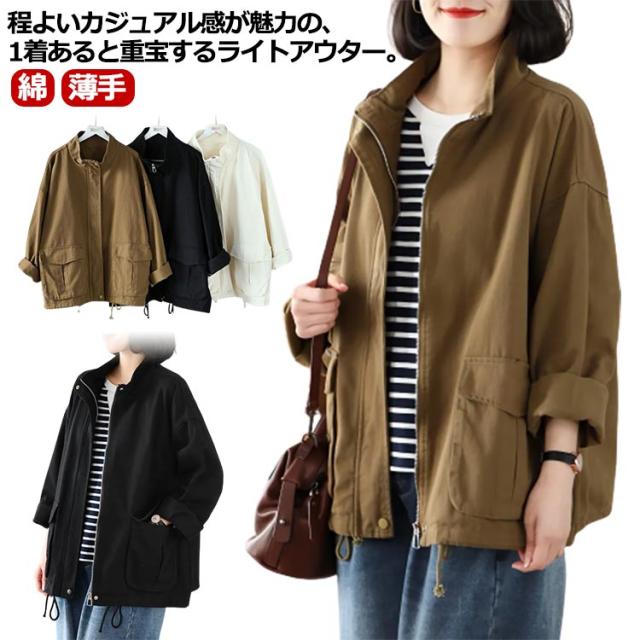 スタンドカラー ジャケット レディース 綿 ツイル生地 コート ショート丈 薄手 アウター ブルゾン 上着 ゆったり 春 秋 ライトアウター 裏地なし コットン 大人 カジュアル 30代 40代 50代 通勤 通学 ホワイト ブラック ブラウン 【送無】