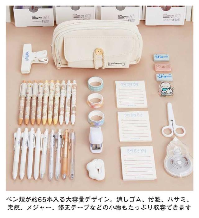 | たっぷり入ってすっきり整理もできるペンケース 良質なキャンバス生地で作られており、精巧で耐久性があり、軽くて耐摩耗性で清潔になりやすいです ペンシルケースのほこり、裂け目、引っかき傷、摩耗に対する強力な保護を提供します。 ペンケースは両側から開くことができ、文房具がはっきりと見えるので、取りやすくなります ペン類が約65本入る大容量デザイン。消しゴム、付箋、ハサミ、定規、メジャー、修正テープなどの小物もたっぷり収容できます ペン袋は鉛筆に適しているだけでなく、化粧品バッグ、クラフトバッグ、旅行などとしても利用してこともできます。 | |