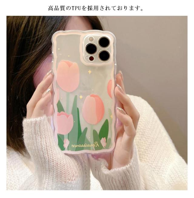 スマホケース iphone15 Plus Promax なみなみケース ウェーブケース シリコン チューリップ 花柄 うねうね 透明 カバー シンプル iphone14 plus iphone13pro max iphone13 iphone13pro 送料無料
