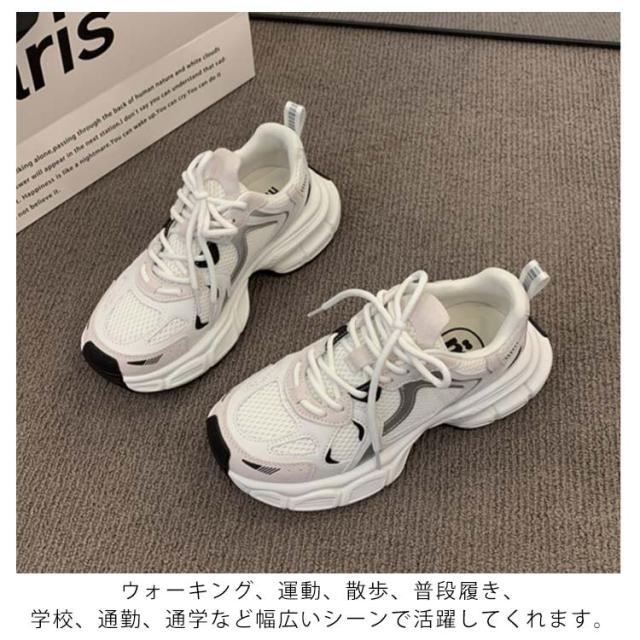 スニーカー レディース 厚底 ダッドスニーカー スポーツ ランニングシューズ ウォーキングシューズ 運動靴 通気性 カジュアル 軽量 身長アップ 幅広 通勤 通学 送料無料