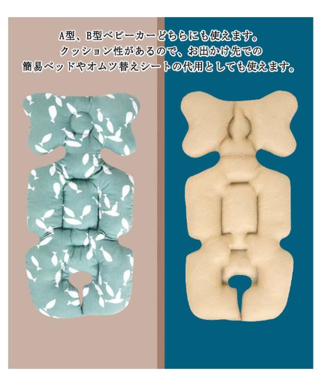 | ふかふかベビーカーシート! 【リバーシブル仕様】 ベビーのデリケートな体を優しく支えるベビーカーマット。 メッシュ生地とコットン生地のリバーシブル仕様。気候や赤ちゃんの体質に合わせてお使いいただけます。 厚みしっかり8cm!リボン型のピロークッションで赤ちゃんの頭を両サイドからしっかりホールド!デリケートな赤ちゃんの頭を守ります。 ふかふかのクッションで触り心地も◎ 頭だけでなく体全体を安定させ、衝撃&振動を抑えます。 ベルトを穴に通すなど、煩わしい作業は必要なし!そのまま置いてベルトをシートの隙間から通すだけ。お出かけ準備もらくちんです。 A型、B型ベビーカーどちらにも使えます。クッション性があるので、お出かけ先での簡易ベッドやオムツ替えシートの代用としても使えます。 かわいい柄入りでおしゃれなママにも喜ばれます! | |