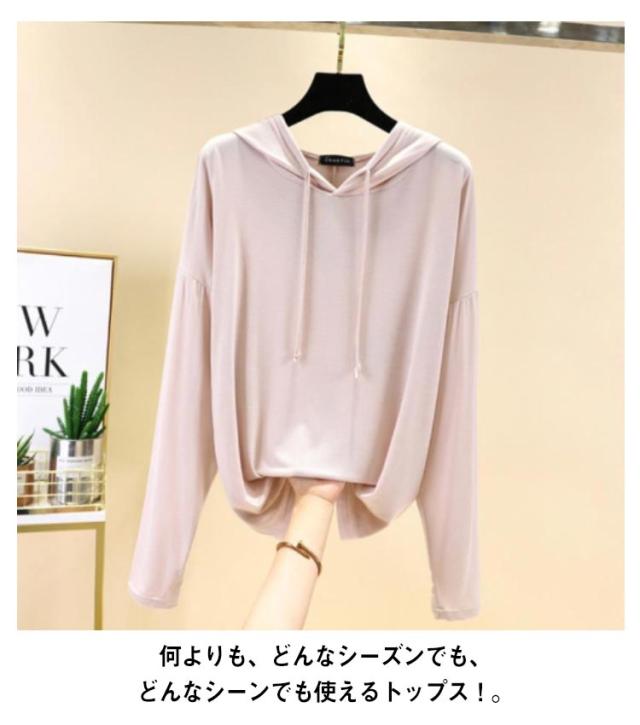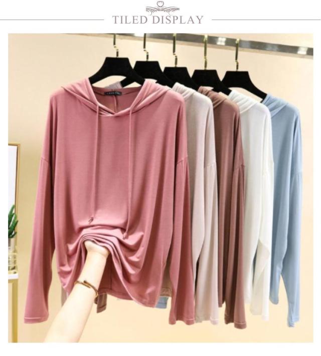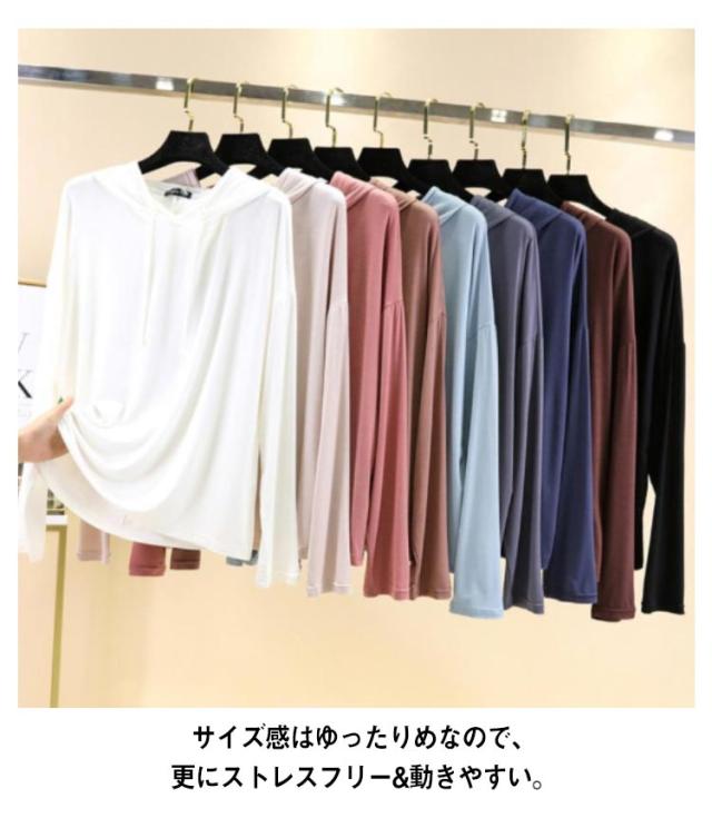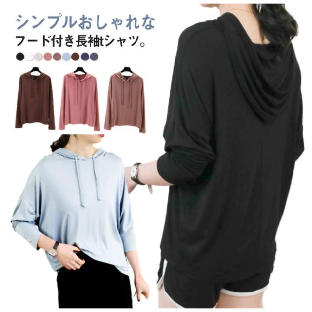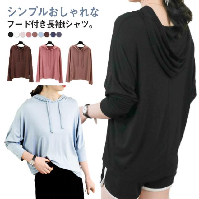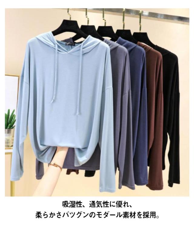 全9色×4サイズ!パーカー 送料無料 薄手 春秋 Tシャツ ゆったり フード付きTシャツ 長袖 レディース カットソー ロンT カットソー プルオーバー モダール 長袖Tシャツ 柔らかい トップス フード付き ゆったり