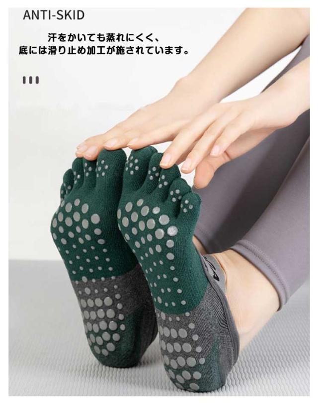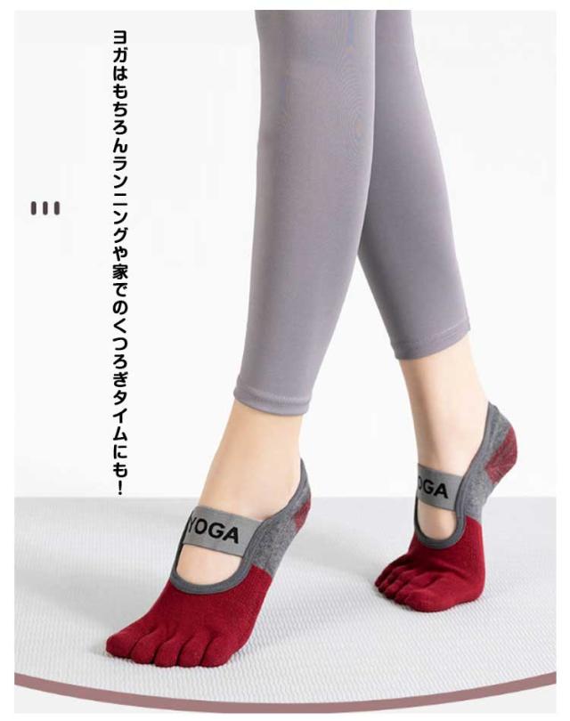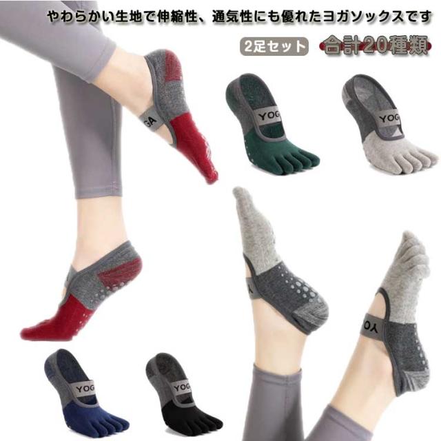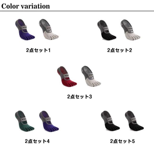 ヨガソックス 5本指 滑り止め 2足セット ヨガ 靴下 ヨガ用靴下 レディース くつした くつ下 つま先あり おしゃれ シリコン バレエ 冷え スポーツ フィットネス ホットヨガ 大きいサイズ 22-25cm
