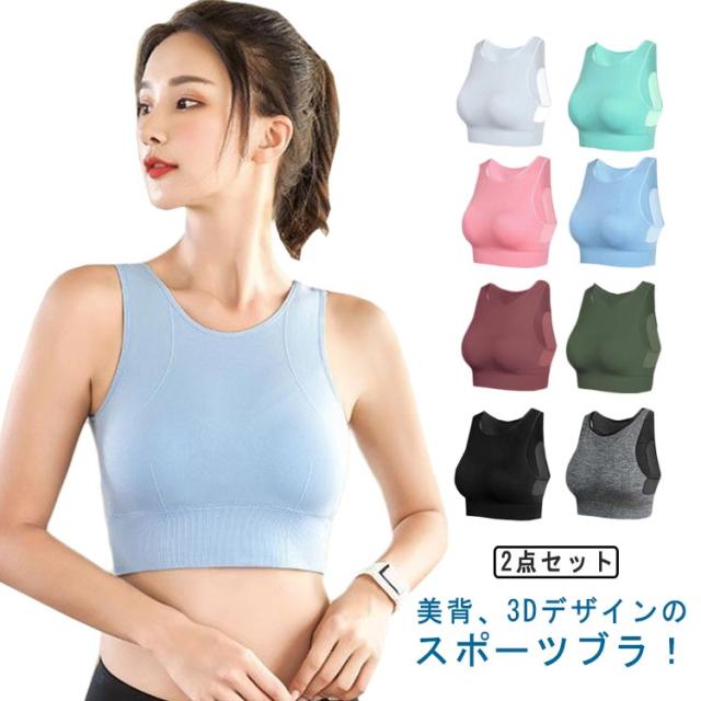 3D美背 スポーツブラ スポーツウェア スポーツブラジャー 2点セット レディース フィットネス ブラ ブラトップ ブラジャー 切り替え メッシュ ヨガウェア ランニング 揺れない カップ付き S M L XL 2XL
