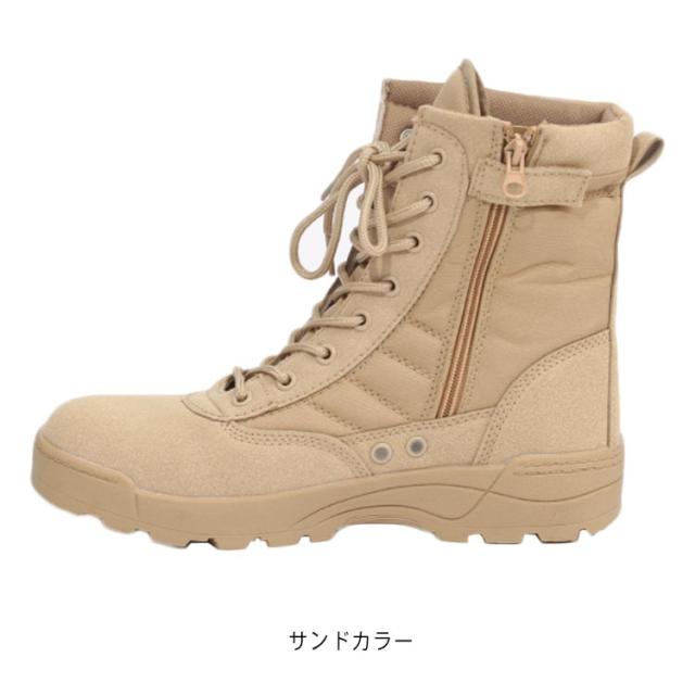 ミリタリーブーツ タクティカルブーツ メンズ サイドジッパー バイクブーツ コンバットブーツ トレッキング 登山 アウトドア ワーク 作業靴 シューズ ロングブーツ レースアップ