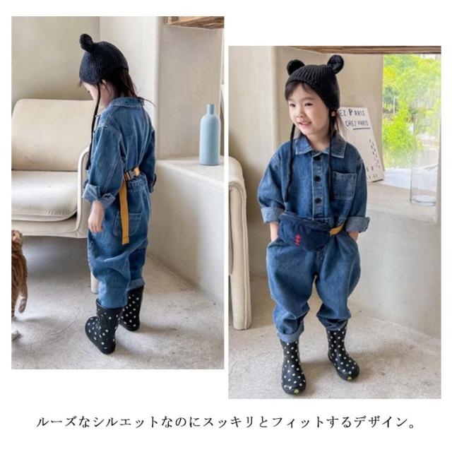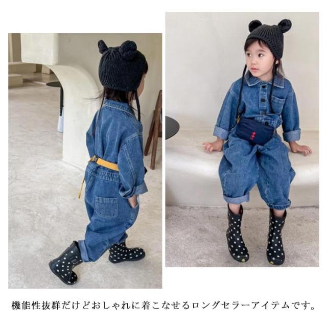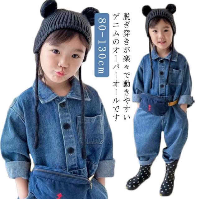 つなぎ キッズ オールインワン カバーオール ジーンズ パンツ ズボン 男の子 女の子 ベビー服 子ども デニム 長袖 ロング丈パンツ ルームウエア カジュアル 結婚式 普段着 フォーマル 80 90 100 110 120 130 通園着 入園式 シンプル 冬 春 秋 送料無料