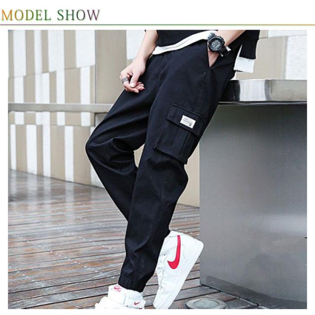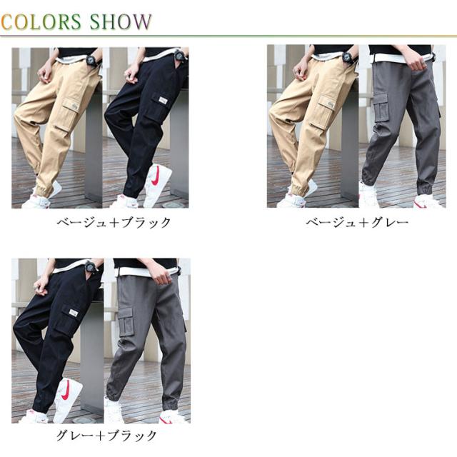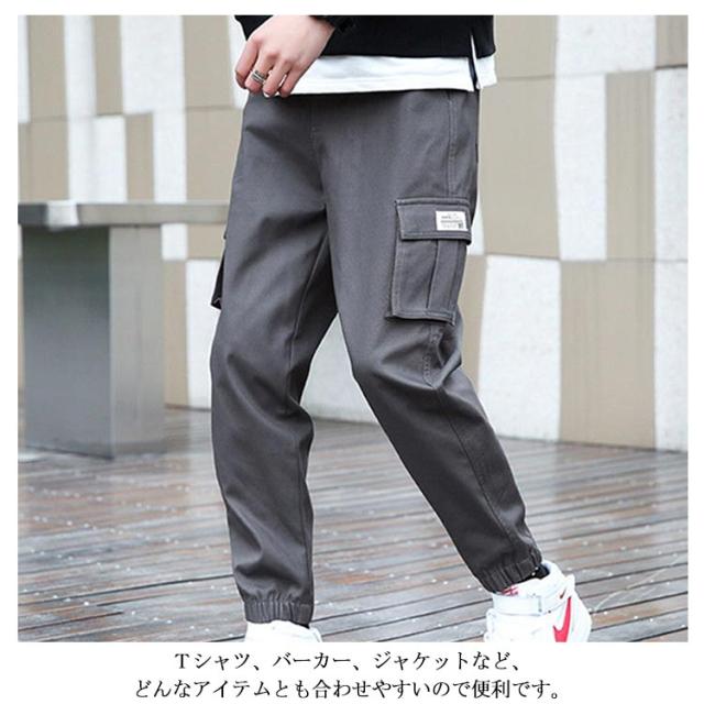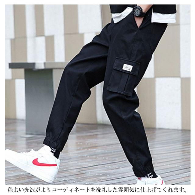 2点セット! カーゴパンツ メンズ ジョガーパンツ ストレッチ ゆったり ワイドパンツ イージーパンツ ワイド ボトムス 太め 無地 ミリタリー ズボン パンツ 黒 ブラック 裾絞り 作業着 カジュアルパンツ 体型カバー 長ズボン 秋 春 夏 冬 韓国ファッション 送料無料